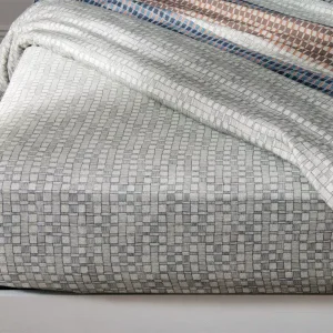 - Drap-housse : Imprimé géométrique bicolore, bonnet 35 cm.
