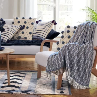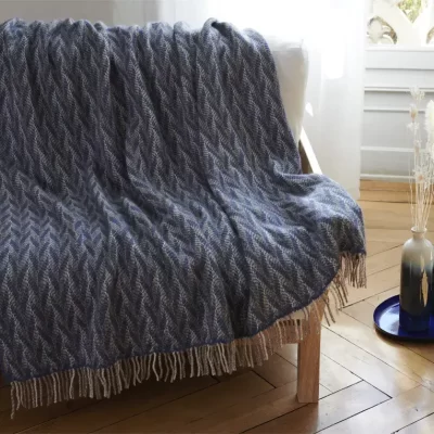 Plaid 100% laine vierge, nettoyage à sec.