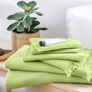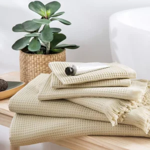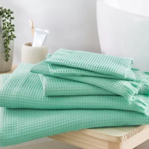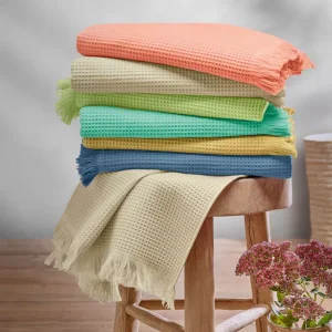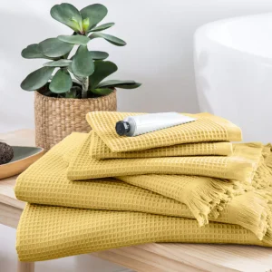 Linge de bain en coton bio et nid d’abeille, certifiée GOTS. 100% coton issu de l’agriculture biologique, 300g/m2.