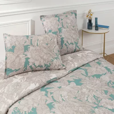 Détail enchanteur : le joli motif oiseau caché parmi les fleurs qui complète subtilement l’imprimé. On aime aussi la confection en fils très fins et tissés serrés de cette luxueuse parure au toucher velouté incomparable. Taie d’oreiller imprimé fond bleu, dos imprimé fond ivoire, petit volant.
