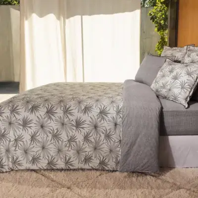 Envie de vous endormir dans une parure de lit à l’esprit jungle urbaine résolument contemporaine ? Misez sur le contraste des feuilles de papyrus et du quadrillage graphique avec ces taies d’oreiller. Loin de s’opposer, les motifs se répondent et se complètent tout en finesse recto-verso sur ces taies d’oreiller.