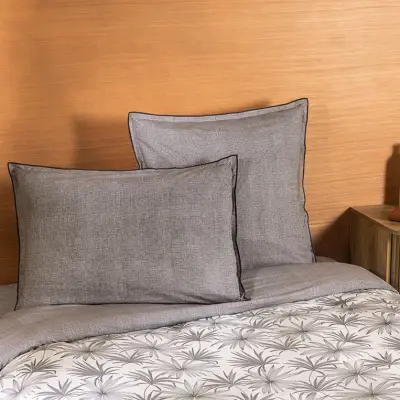 Le petit plus Linvosges : la finition surjet gris sur les taies d’oreiller qui vient souligner le style de ce linge de lit résolument moderne.